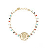 Ajoutez une touche d'élégance à votre collection de bijoux avec le Bracelet Aureus Multico. Ce ravissant bracelet mini est orné de pierres colorées qui apportent une note de fraîcheur et de vitalité à votre style quotidien. La médaille Auréus ronde de 1 cm, délicatement dorée à l'or fin 24K, ajoute une touche de sophistication à l'ensemble.